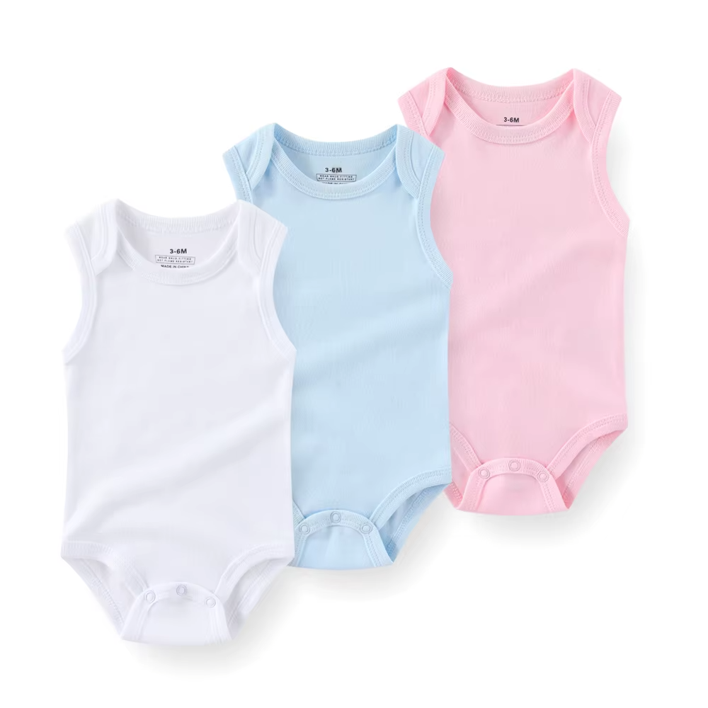 Body Sem Mangas para Bebê – Fresquinho, Macio e 100% Algodão- Kit 3 peças.