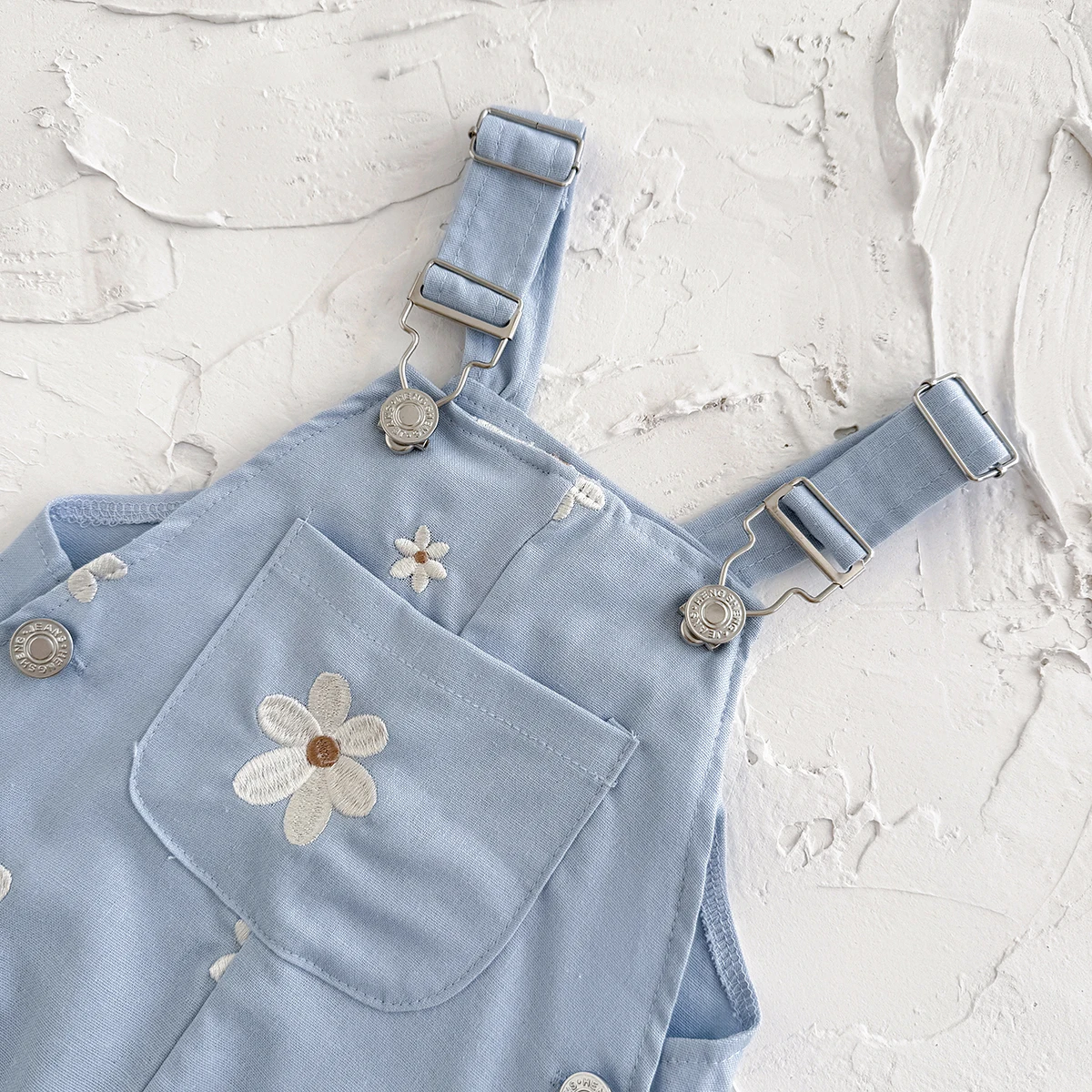 O destaque fica por conta do bordado floral delicado, que traz um toque artesanal e alegre ao look. O design soltinho com alcinhas é ideal para o verão, permitindo que o bebê se mova à vontade, enquanto o bolso frontal adicionam praticidade e muito encanto à peça. Perfeito para passeios, fotos e momentos especiais com a família.